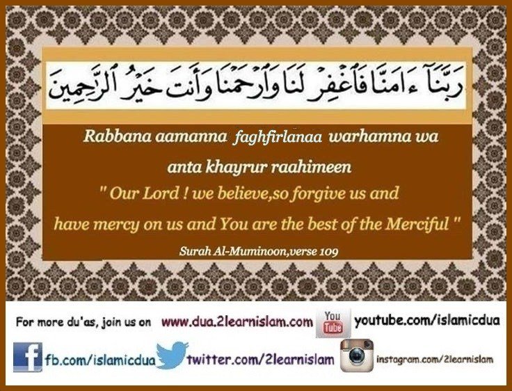 رَبَّنَا آمَنَّا فَاغْفِرْ لَنَا وَارْحَمْنَا وَأَنتَ خَيْرُ الرَّاحِمِينَ