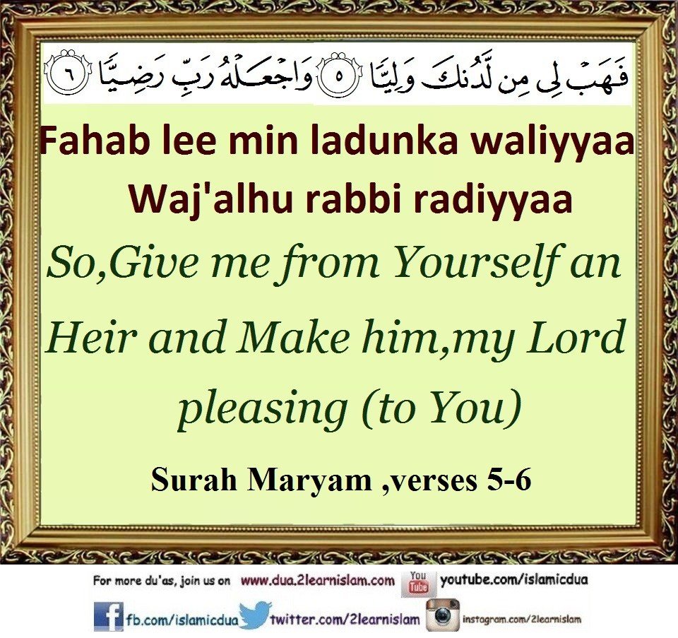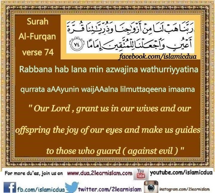 “Our Lord, Grant us from our spouses and our offspring the comfort to our eyes and make us leaders for the righteous.”