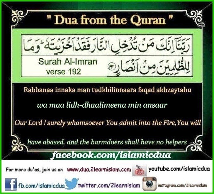 “Our Lord! Indeed, whom You admit to the Fire, then surely, You have disgraced him, and never will the wrongdoers find any helpers.”