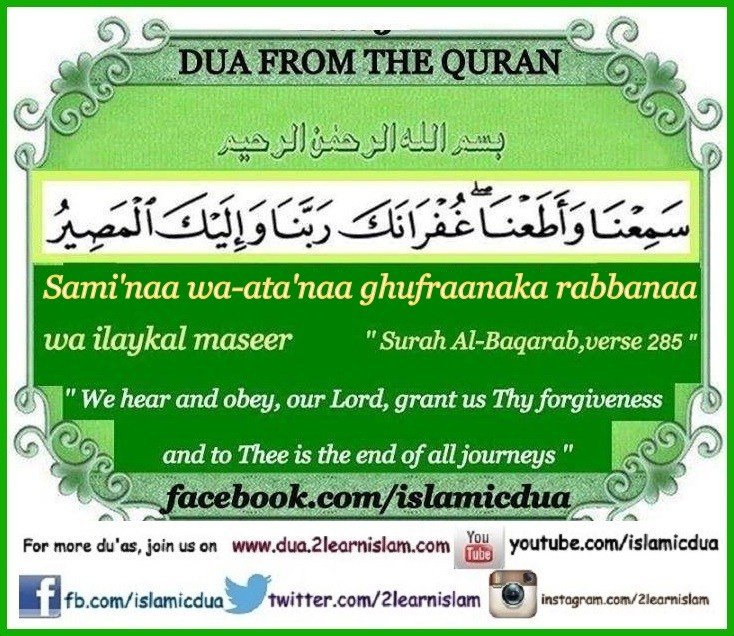 سَمِعْنَا وَأَطَعْنَا ۖ غُفْرَانَكَ رَبَّنَا وَإِلَيْكَ الْمَصِيرُ