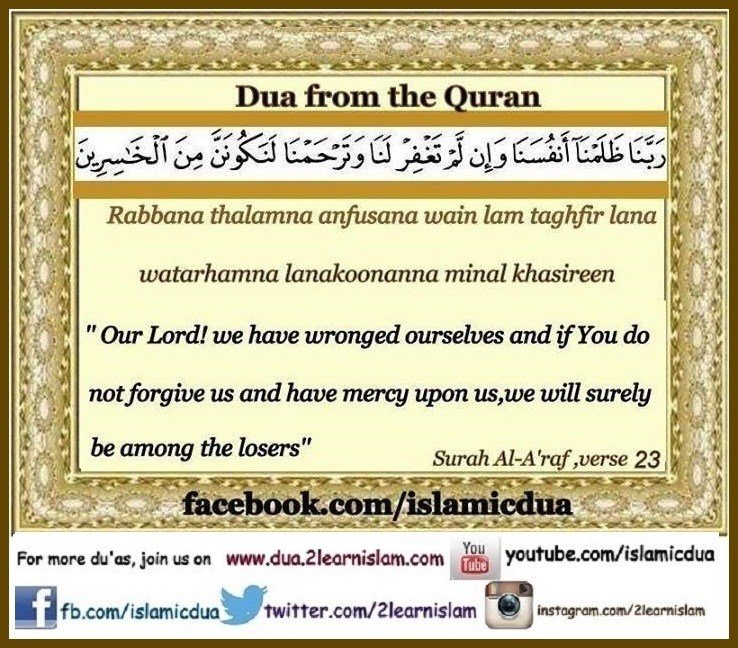 “Our Lord, we have wronged ourselves, and if You do not forgive us and have mercy upon us, we will surely be among the losers.”