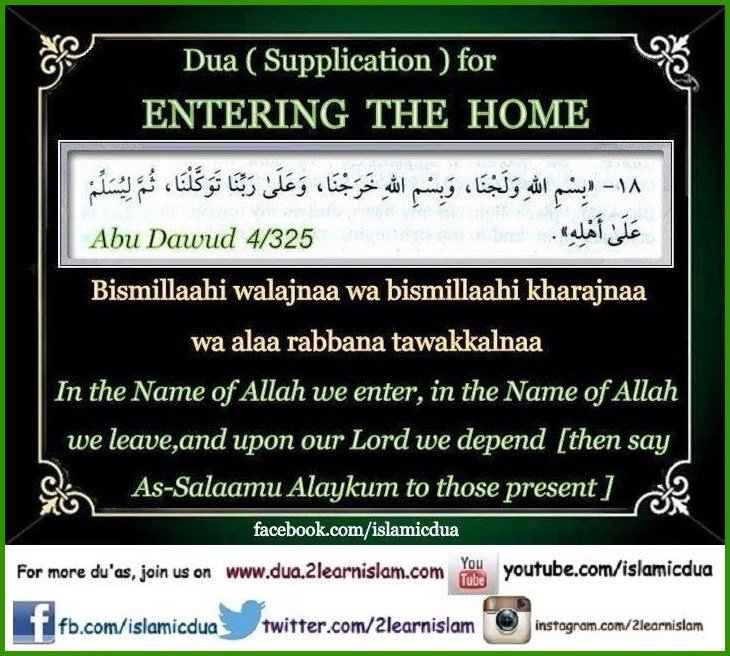 In the Name of Allah we enter, in the Name of Allah we leave, and upon our Lord we depend [then say As-Salaamu ‘Alaykum to those present].