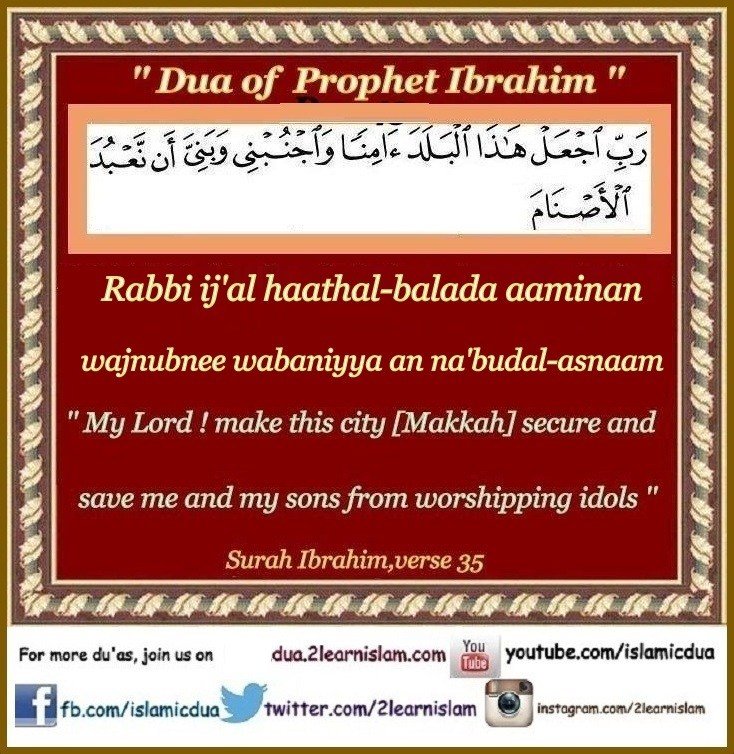 رَبِّ اجْعَلْ هَٰذَا الْبَلَدَ آمِنًا وَاجْنُبْنِي وَبَنِيَّ أَن نَّعْبُدَ الْأَصْنَامَ