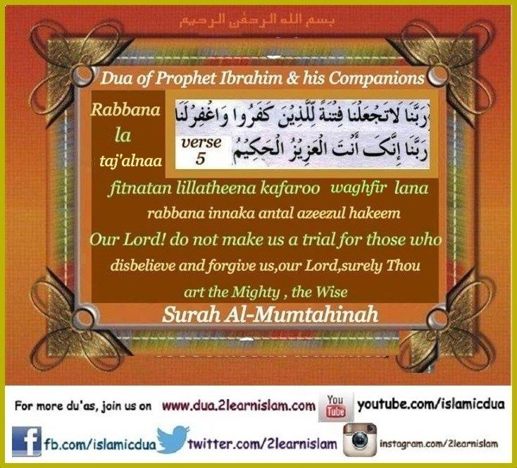 ”Our Lord! do not make us a trial for those who disbelieve, and forgive us, our Lord! Indeed You, only You, are the All-Mighty, the All-Wise.”